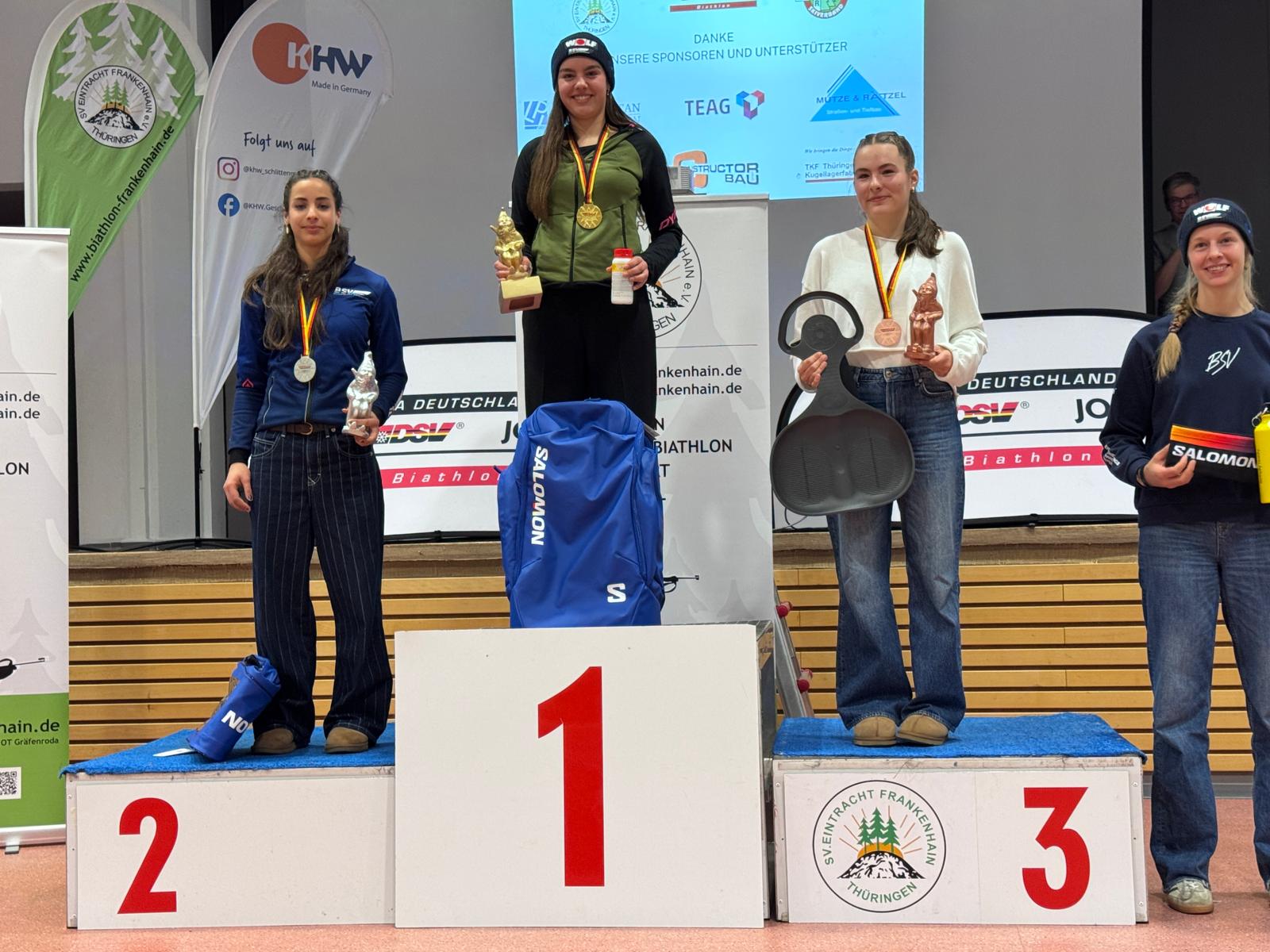 Die diesjährige Deutsche Meisterschaft der Jugend und Junioren im Biathlon fand vom 29. Januar bis zum 01. Februar am Weltcuport Oberhof in der LOTTO Thüringen Arena statt. In den beiden Rennen am Freitag und Samstag (Massenstart und Sprint) wurden in den diversen Altersklassen die Meister ermittelt. Dabei zeigte sich Oberhof in allerbester Winterlaune mit Neuschnee am Donnerstag und Temperaturen von um die null Grad. Entsprechend waren die Loipen rund um das Stadion bestens präpariert. Mit dabei, im 28 Sportler:innen umfassenden SBW-Team, waren von unserem Ski-Club Yves Kupferer, Elena Mayr, Lynn Meier und Karla Gehrmann. Krankheitsbedingt konnte Helen Issler leider an diesem Wochenende nicht starten.