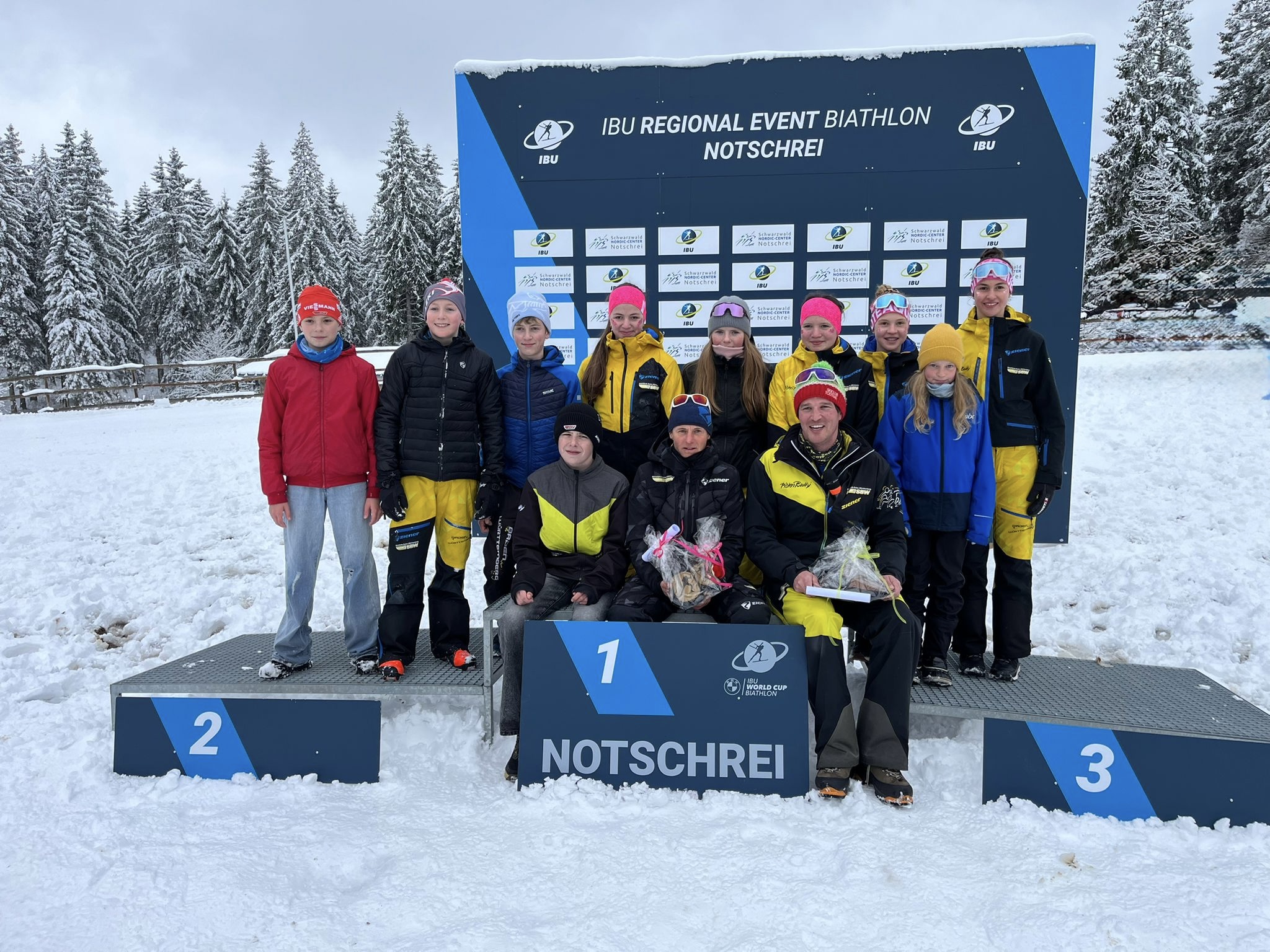 Die jüngsten aus Laser- und Schnupperklassen gingen in einem Sprintrennen an den Start. Die Schüler- und alle Kleinkaliberklassen gingen in Zweier-Teams in einem Massenstart auf die Strecke. Für den SC Bad Säckingen waren Robert, Agata und Aleksandr Weißheim, Yves Kupferer, Lynn Meier, Elena Mayr und Yara Wittmann dabei. Die Ergebnisse findet Ihr hier. Vor der Siegerehrung wurden auch Ina Metzner und Andreas Gädinger-Harter mit einem kleinen Dankeschön bedacht. Sie sind das federführende Trainerteam im Schülerbereich in Schönwald beziehungsweise am Notschrei.