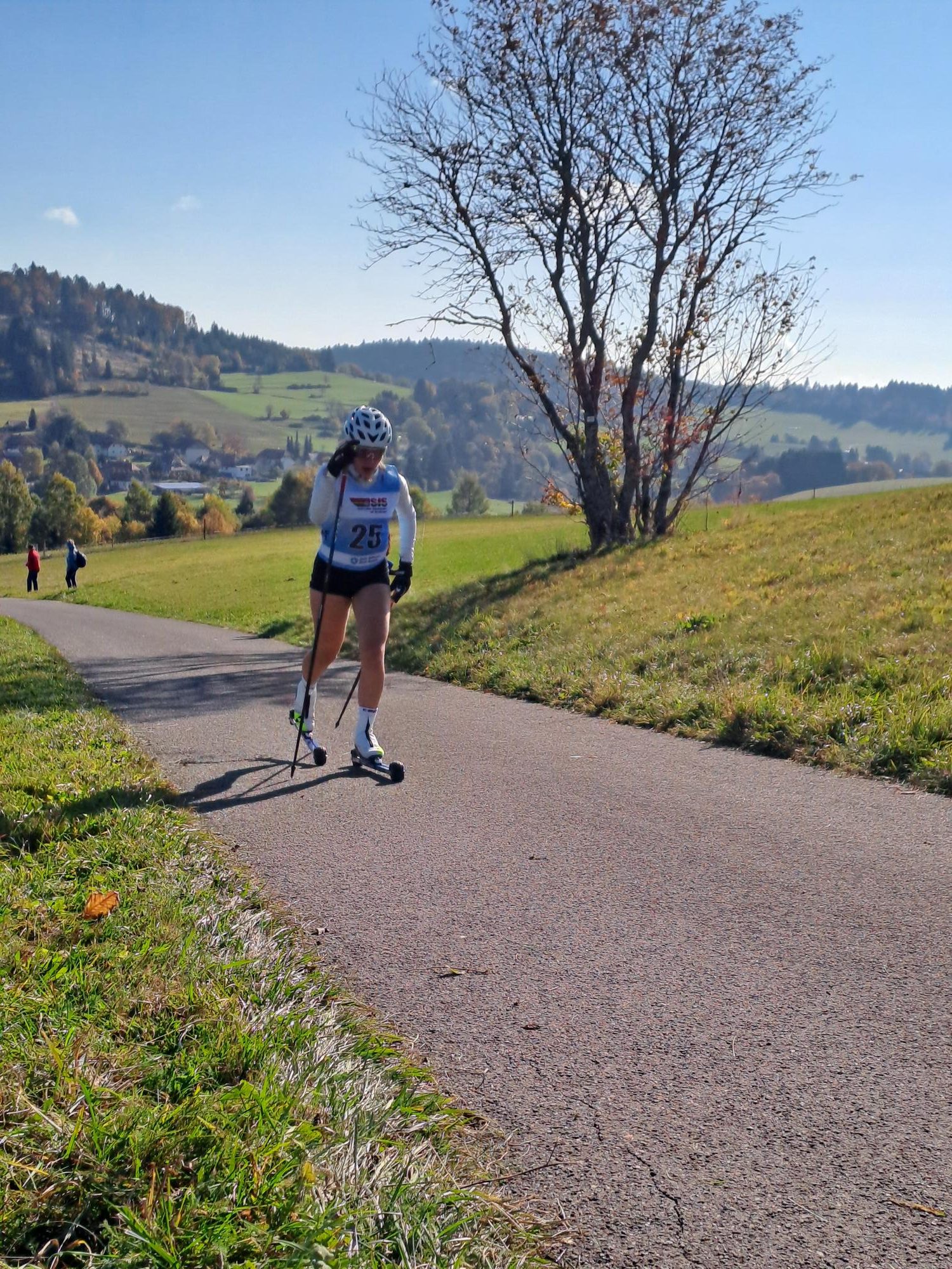 Beim schon 13. Seebacher Rollski Berglauf waren am Tag der Deutschen Einheit auch wieder einige Sportler:innen des SC Bad Säckingen am Start. Bei guten Bedingungen und etwa 15°C war die Veranstaltung wie immer durch den Ski Club Seebach bestens organisiert. In der U8 der Jungen konnte unser Robert Weißheim als Sieger von ganz oben auf dem Podest strahlen. Nach 1.6 km setzte er sich mit 9,5 Sekunden Vorsprung durch. Seine Schwester Agata konnte sich ebnfalls über einen Podestplatz freuen. Sie wurde in der U10 der Mädchen sehr gute Zweite. Aleksandr Weißheim verpasste in der U13 nur ganz knapp, nämlich um 2,2 Sekunden, das Podest und wurde somit Vierter in seinem Rennen. Über 7,5 km in der weiblichen U16 musste sich Elena Mayr beweisen. Sie konnte sich am Ende über den zweiten Platz freuen. Wir gratulieren allen vier zu den tollen Leistungen. (Ergebnisliste)